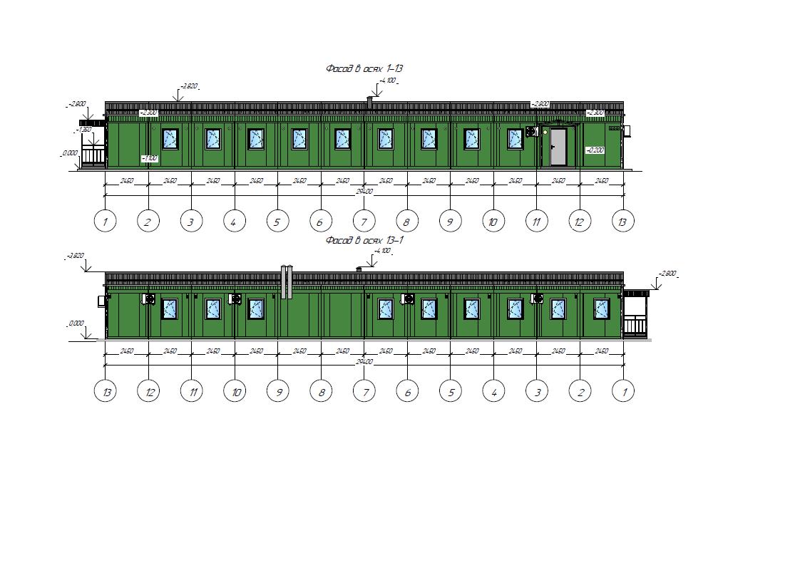 Временное бытовое здание на 32 человека в 1-этажном исполнении