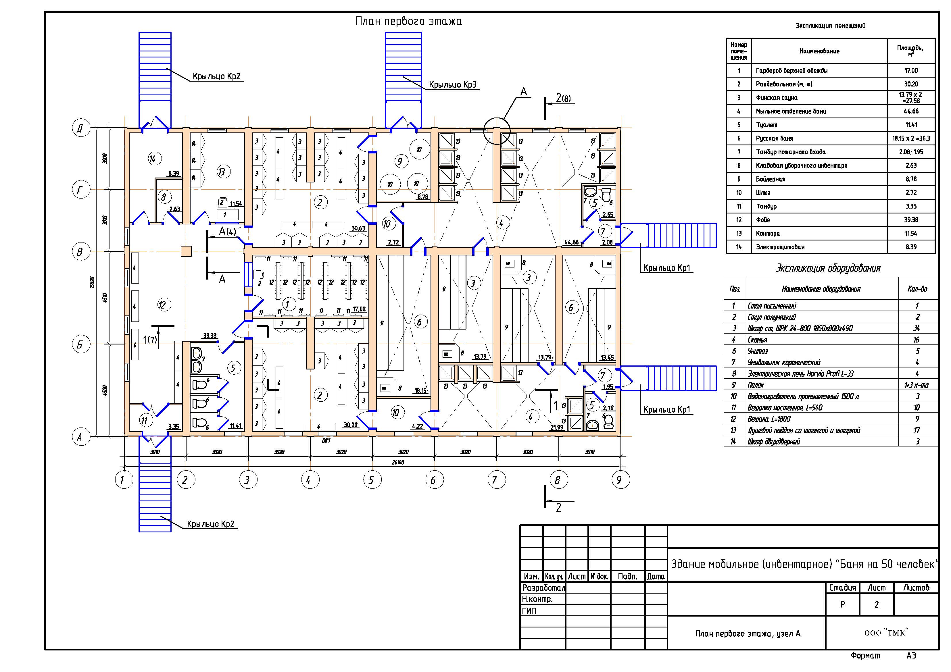 Банно-прачечный комплекс на 58 чел размерами 21х15 м